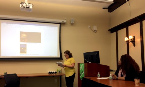 The lights were turned low, and Dr. Dana Horton discussed her poster-presentation “‘Where One Time I Served, Now I Got Others Serving Me’: Women as Post-Neo-Slave Owners in 12 Years a Slave.” Dr. Horton discussed not just the topic of her poster and related research but the whole idea of a poster-presentation, which has long been a standard presentation method in the sciences but has only recently sprung up as a method in literary fields.