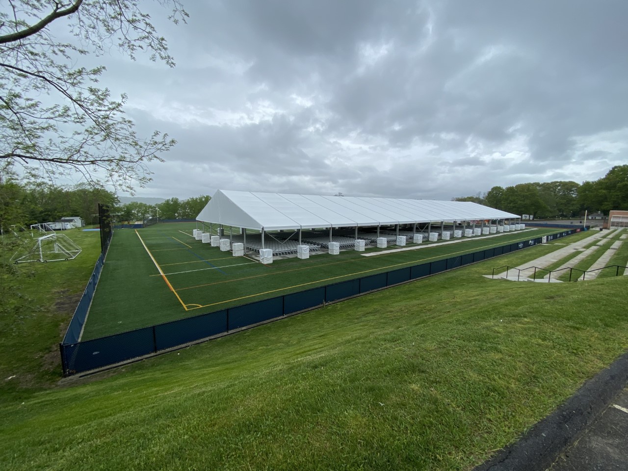 This Wednesday, 5/18, the School of Liberal Arts (SLA) will hold its graduation commencement ceremony on the Dobbs Ferry campus. Below you can see the tent being set up for the event on the western athletic field.