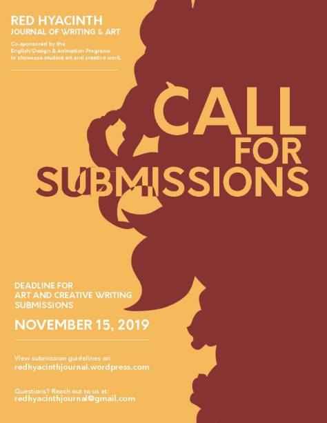 Update: Red Hyacinth Journal editorial positions for the 2022 issue have been filled. The Department thanks everyone for their interest. Please keep an eye out for a “call for submissions” sometime in early-to-mid October.