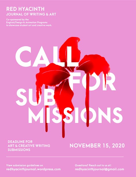 Very soon there will be a call for creative-writing submissions to the college’s literary magazine, Red Hyacinth. Before that, though, the faculty who manage the journal need to assemble a team of student-editors. In the past this has been comprised mostly of undergraduate majors working in an actual office on campus. However this year, since the collaborative editing work can take place through zoom and other online platforms, the managing faculty are hoping to involve our graduate English Literature students on the student-editing team. If you’re interested in volunteering, here’s what you should know: